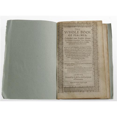 <B><I>The Whole Book of Psalmes: Collected into English Meeter...</B></I></B></I> by Thomas Sternhold and John Hopkins. (London: G.M for the Companie of Stationers, 1638). 8vo and disbound and contained in modern paper wraps. Few tears to last few pages, some light foxing throughout. From the Henry E. Luhrs Collection. <BR><BR><B>Important notice:</