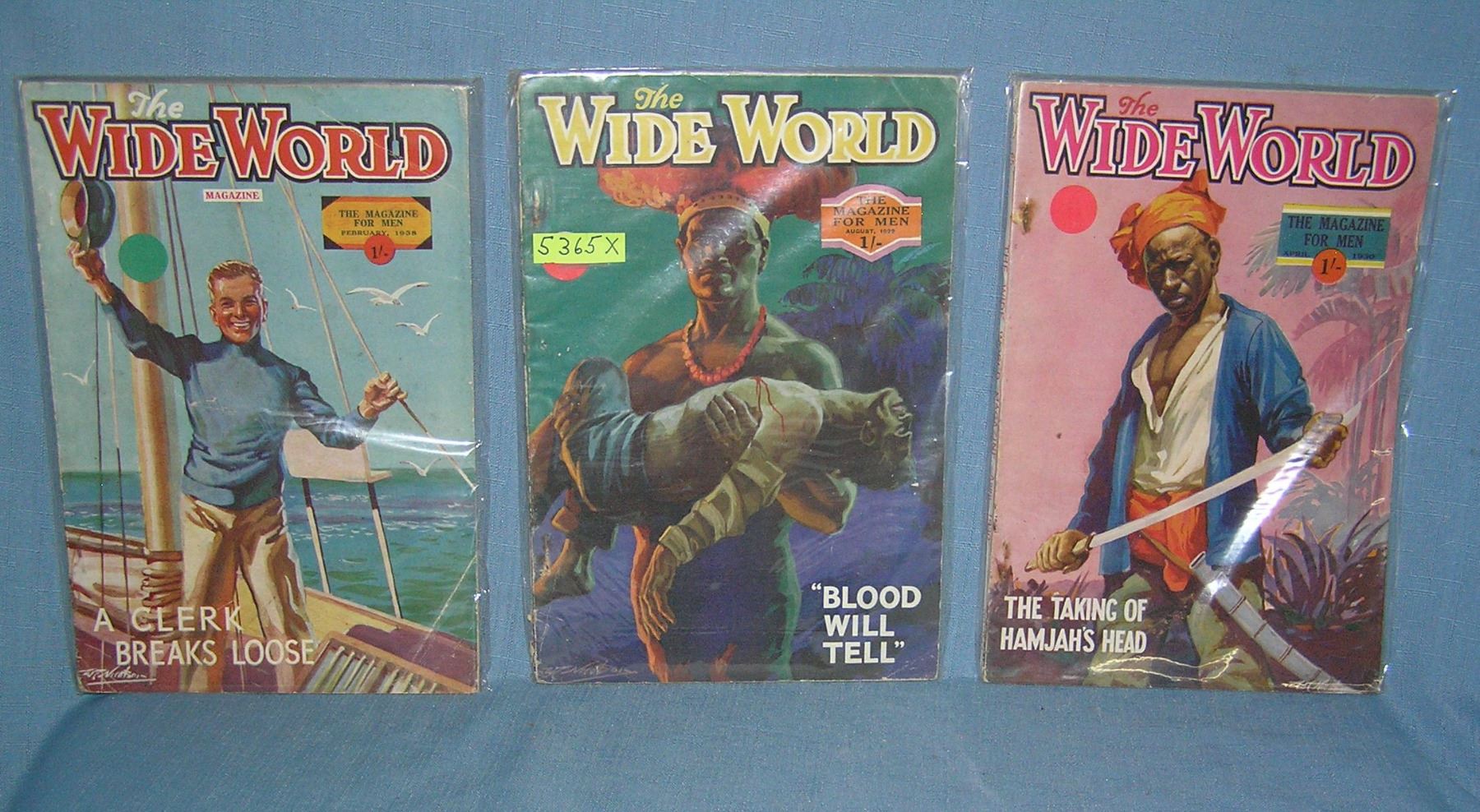The Wide World the magazine for men circa 1929, 1930 and 1938 group of 3 est. value $75.00-$80.00
