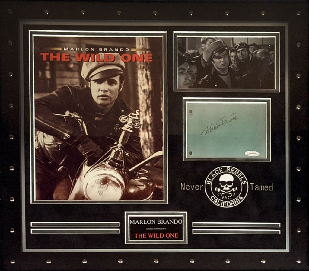 The Wild One Marlon Brando signed photo collage. Custom framed.