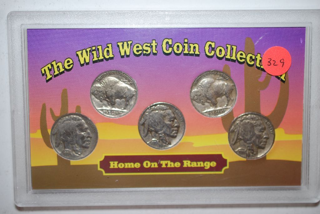 The Wild West Coin Collection Set-Home On The Range; 1934 Buffalo Nickel, 1937 (2) Buffalo Nickel, 1936 Buffalo Nickel & 1935 Buffalo Nickel; Lot of 5; EST. $3-5