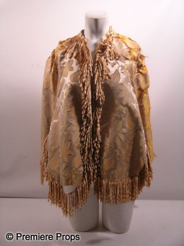 This is a western style 'shawl' from the classic television drama 'The Wild Wild West' (1965-69). The series starred Robert Conrad and Ross Martin as two secret service agents who work for the government in the Old West. The shawl/vest is made from a yellow-gold soft silk style material with a floral pattern, and felt tassels lining the entire costume. Top shows age wear with some small holes and tears in the fabric.