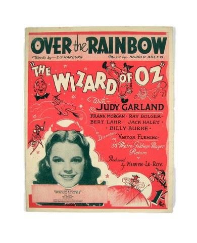 The Wizard of Oz - "Over The Rainbow" Judy Garland Sheet Music. The Very Rare UK London Edition, Francis, Day, & Hunter Ltd. 1939