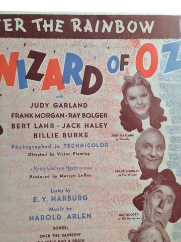 The Wizard of Oz sheet music from "Over The Rainbow" 1939.(9x12)