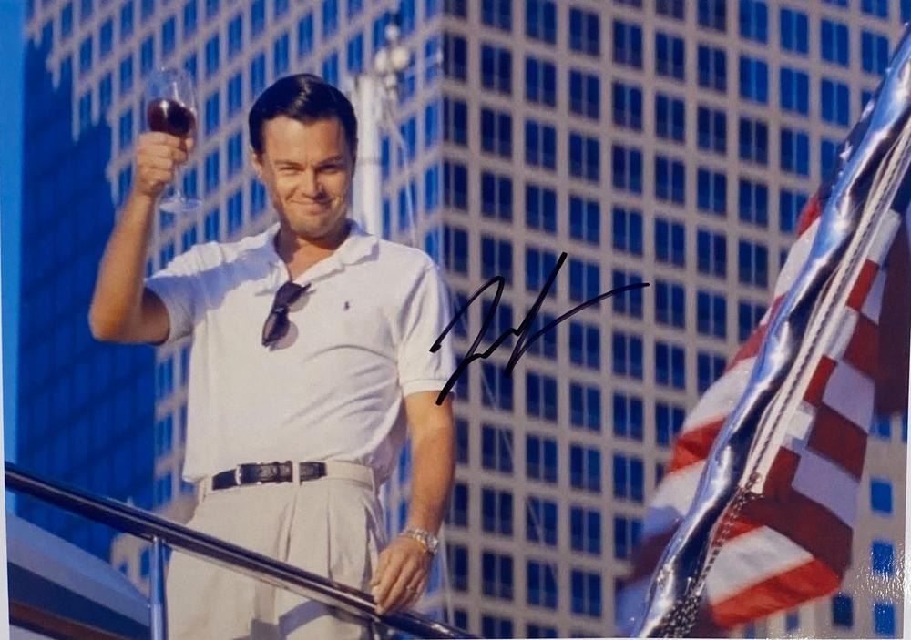 The Wolf of Wall Street Leonardo DiCaprio facsimile signed movie photo. 8x10 inches. This item is a reprint of an original autograph