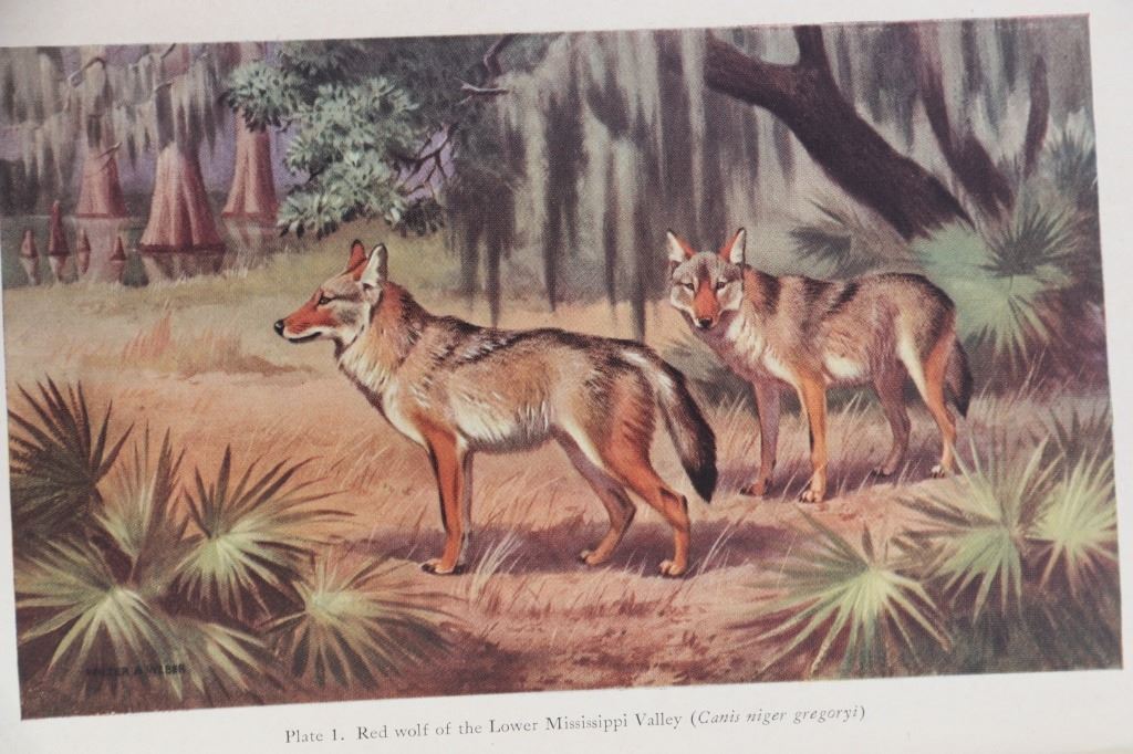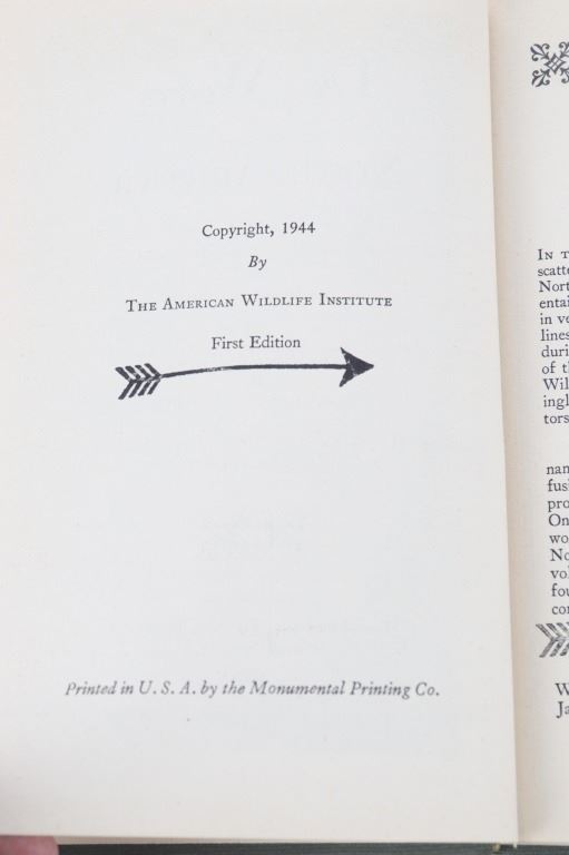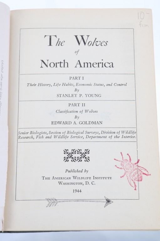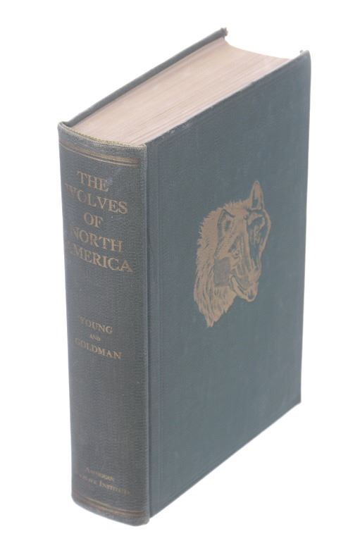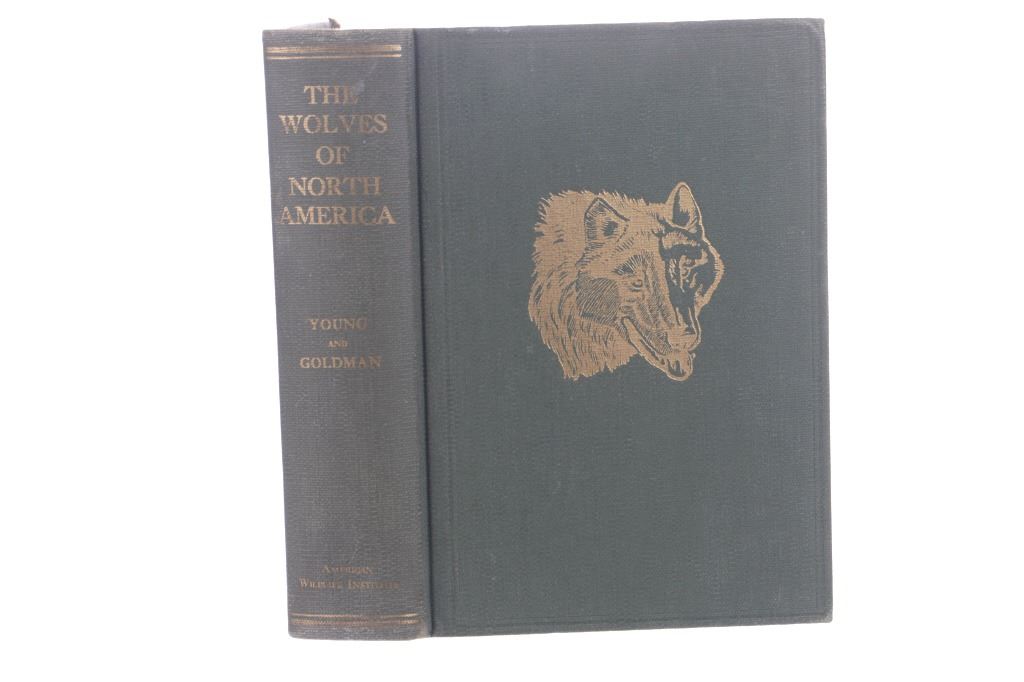 In this lot is a fine 1944 first edition printing of "The Wolves of North America" by Young and Goldman. The book is illustrated with 131 photographic plates (including 6 in full color), 15 text figures (maps, etc.), and 7 tables. The book is covered in green cloth with gilt letters on the spine and a portrait of a wolf on the front cover. This work is comprised of two separate pieces— “Part I, Their History, Life Habits, Economic Stats, and Control” by Stanley P. Young and “Part II, Classification of Wolves”. The book includes all you ever wanted to know about wolves in North America by two authorities in the field. The book measures 9" X 6 1/2" X 2". The book is in good condition and has very minor wear to extremities.