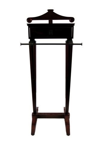 The Women (2008) Mary Haines (Meg Ryan) Valet Stand Prop - Based on the breakthrough novel by Claire Booth, "The Women" was turned into a classic film in 1939 with an all star cast and directed by George Cukor. What made it so special was that the film only had women in the cast, and an all-star cast at that! It was remade beautifully in 2008, this time starring Meg Ryan, Annette Bening, Eva Mendes, Debra Messing, Bette Midler, Candice Bergen, Carrie Fischer and Cloris Leach man. Again, it tells the story of Mary Haines (Meg Ryan), a successful fashion designer who is going through the trials of a painful divorce. She gets to keep her beautiful home, which is decorated with all the most tasteful art and furniture. This is one of pieces from the set. It's a magnificent "Bombay" dark walnut Valet Stand with leather covered top accessory tray, pull out drawer, garment overhangs and an umbrella stay. This exquisite piece of functional furniture and art comes directly from the set after the production. Valet Stand is approx 18"x43". Because of its size and weight, please note that there will be an additional shipping charge.