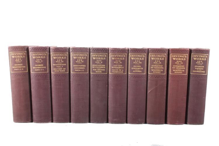 Offered for sale is a Ten Volume Set of The Works Of Washington Irving. This set features ten volumes and two volume IX. The books show good condition with little wear.