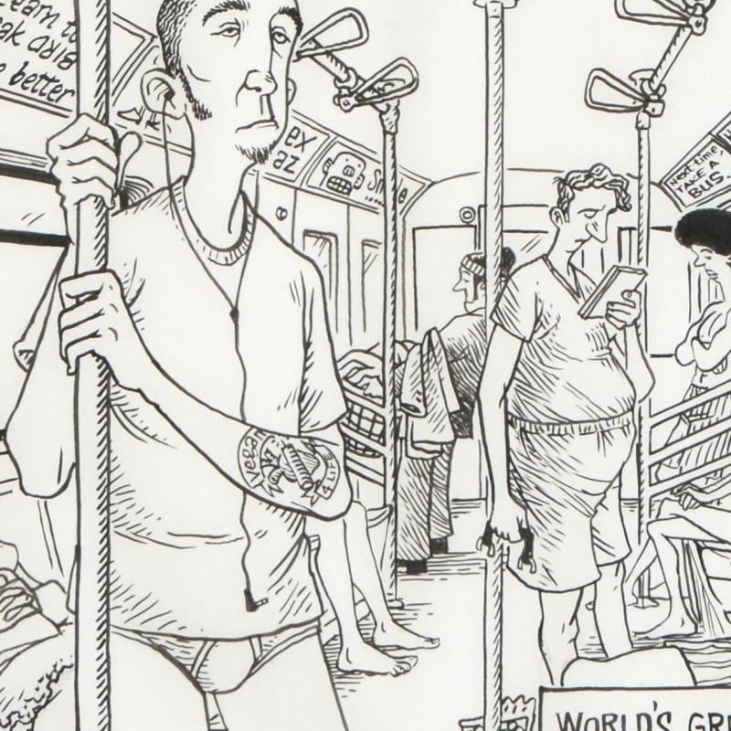 Enter a surreal and satirical world of twisted imagination and award winning creativity. "The World's Greatest Pickpocket" is an original pen & ink drawing on paper by Dan Piraro, creator of the critically acclaimed and award winning comic strip, Bizarro! This piece is hand signed and comes framed. Includes Certificate of Authenticity! Measures approx. 21.5" x 15" (with frame), 13" x 7" (image).