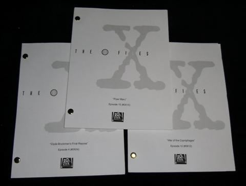 The X-Files (1993-2002) - Three original production scripts from “The X-Files” episode Clyde Bruckman’s Final Repose (Season 3, Episode 4). Mulder and Scully receive help in the investigation of a murder case from a reluctant psychic. This episode guest starred Peter Boyle, who won an Emmy for the part! Episode War of the Coprophages (season 3, Episode 12). Mulder gets caught up investigating what could be alien-mechanical cockroaches with metal bodies. Episode Piper Maru (Season 3, Episode 15). When a diver from a French salvage ship called the Piper Maru discovers a World War II fighter plane and is the only member of his crew not exposed to harmfully extreme levels of radiation, Mulder and Scully investigate.