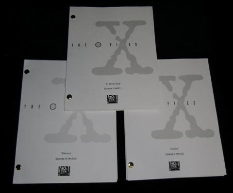 The X-Files (1993-2002) - Three original production scripts from “The X-Files” episode Unruhe (Season 4, Episode 2). To catch a twisted killer, Mulder and Scully attempt to decipher the clues he unwittingly leaves behind; psychic photographs revealing his darkest fear. Episode El Mundo Gira (Season 4, Episode 11). The agents investigate strange phenomena in a border town that the locals blame on the legendary chupacabra. Episode Demons (Season 4, Episode 23). While Mulder is haunted by flashbacks to his youth, he and Scully try to determine his connection to two unexplained murders in which he seems to have been involved.