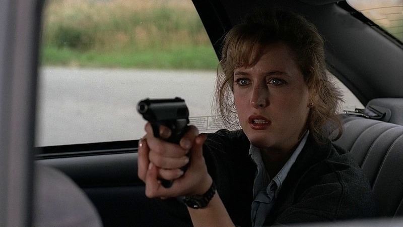Early in the first season, FBI Special Agent Dana Scully (Gillian Anderson) carries a Bernardelli Model 60 .32 ACP pocket pistol as her sidearm. She carries the weapon beginning in "Pilot" (S1E00) until "Ghost In The Machine" (S1E06). It features a "VB" logo (Vincenzo Bernardelli) on the left grip. Scully's Model 60 has brown grips.