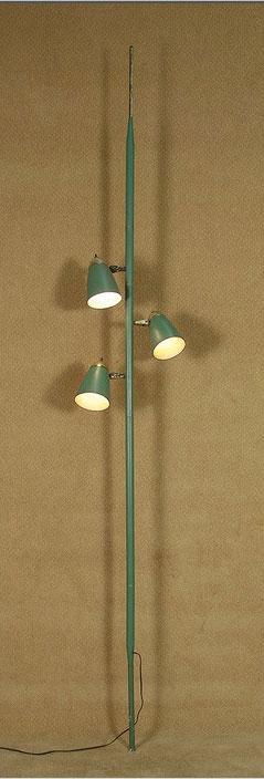 Green 3 Light 1950's Enamel Floor Lamp Used as a Movie Prop in "The X-Files". #2021712 Dimensions: 107"x17"x17"