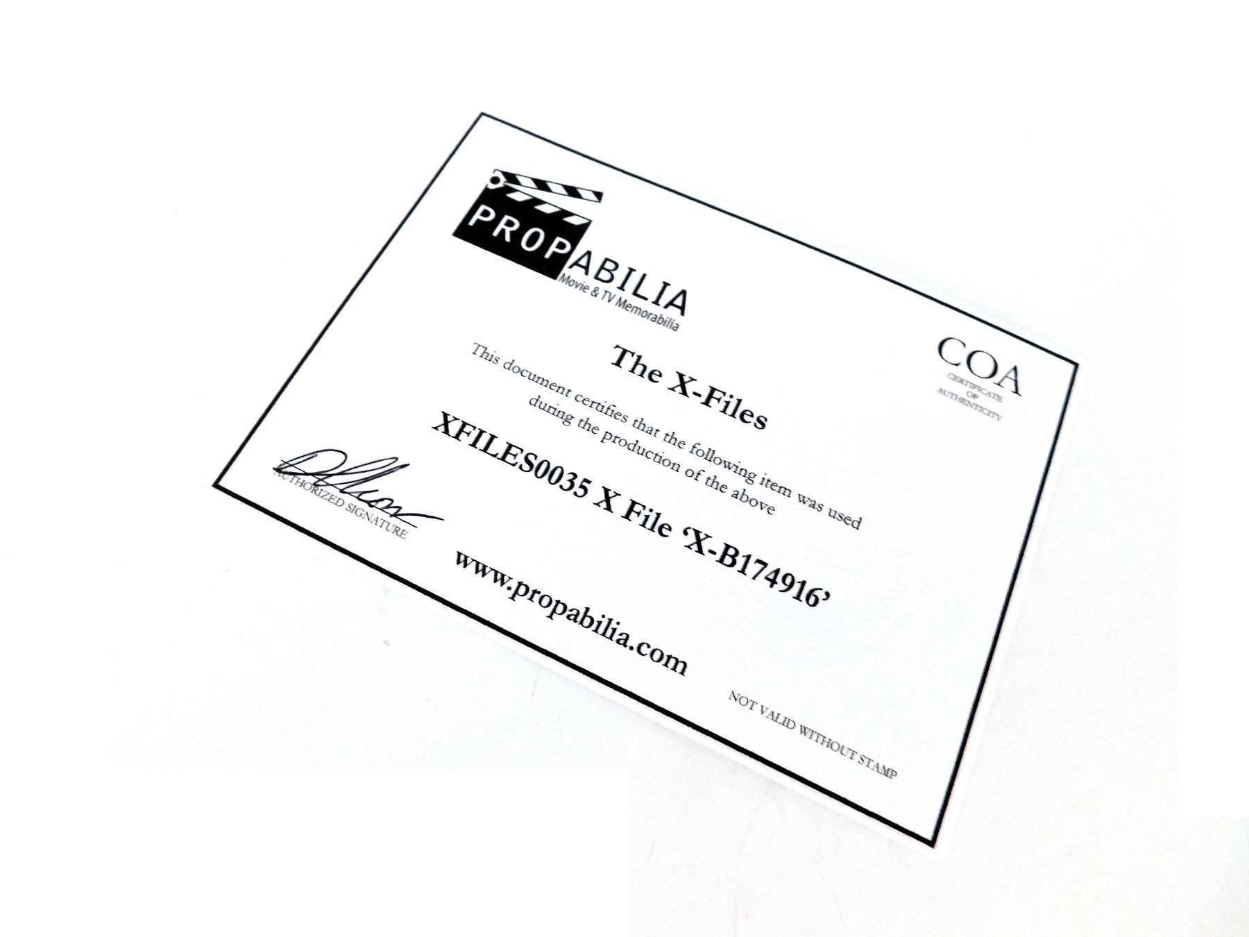 This X File was acquired by the production for use in 'The X-Files' (XXX, 2016).