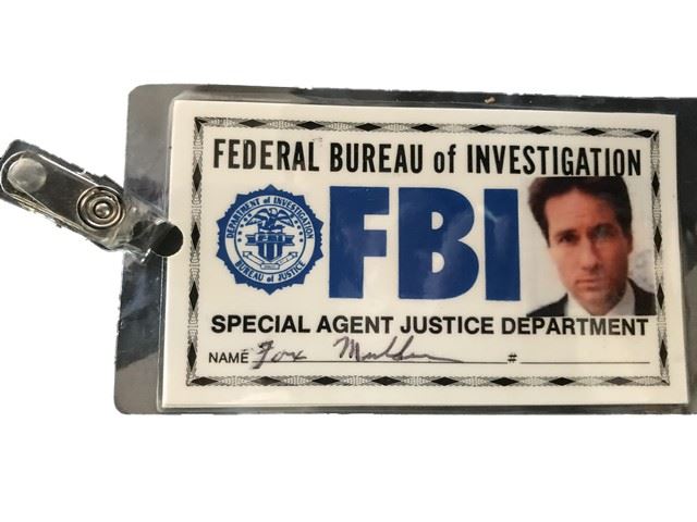 The X-Files TV series – Mulder (David Duchovny) production made ID badge and FBI visitor badge.