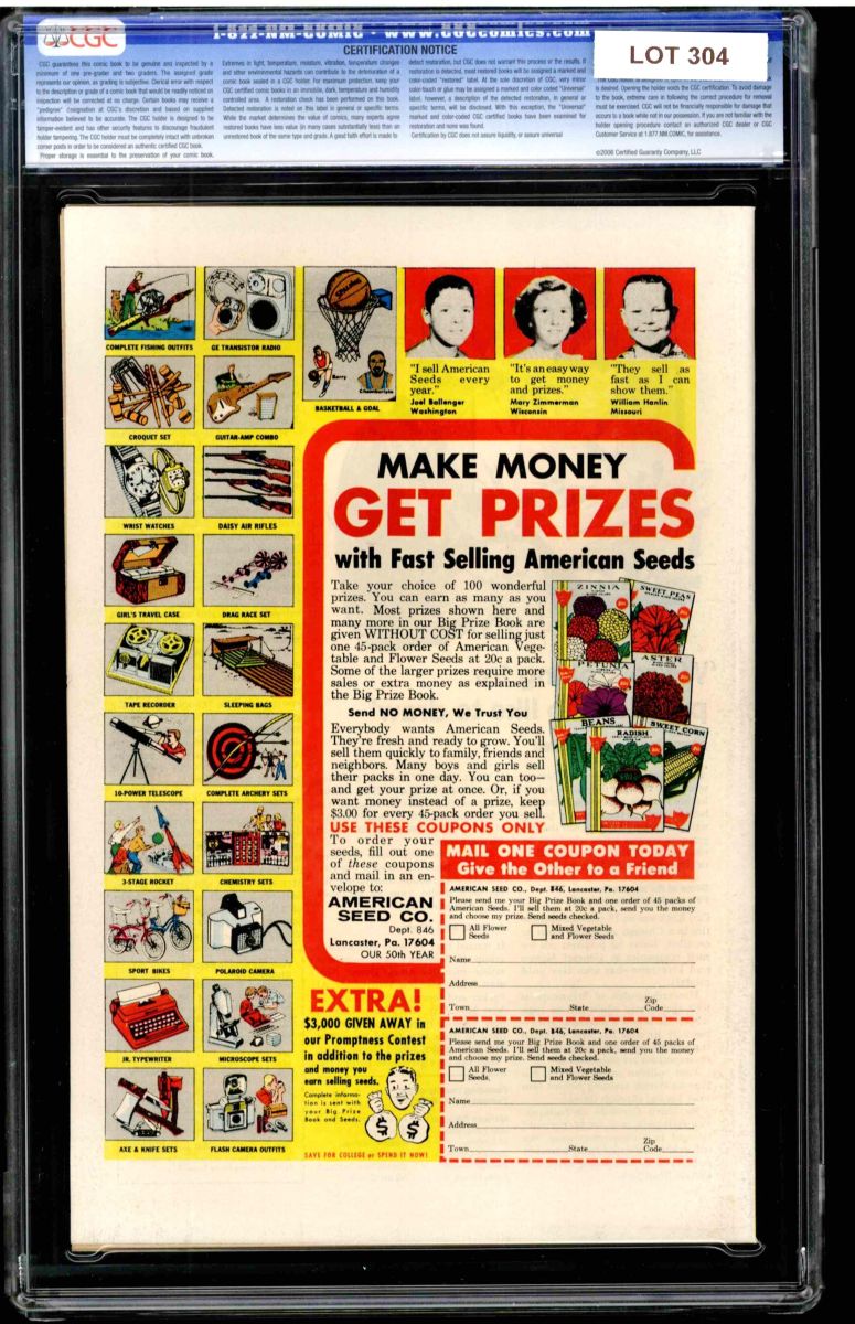 The Auctioneer has reserved the right to reject any and all bids, and to bid at the auction. Auctioneers Auctions are not on approval. Auctioneer does not allow certified material to be returned because of possible differences of opinion with respect to the grade offered by any third party organization, dealer, or service. Absolutely no guarantee of grade is offered for un-certified property sold and subsequently submitted to a third-party grading service. There will be no exceptions to this policy. Under extremely limited circumstances, (e.g. gross cataloging error) a purchaser, who did not bid from the floor, may request Auctioneer to evaluate voiding a sale; such request must be made in writing detailing the alleged gross error, and submission of the lot to the Auctioneer must be pre-approved by the Auctioneer. Bidder must notify Auctioneer in writing of such request within three (3) days of the non-floor bidder receipt of the lot. Any lot that is to be evaluated must be in our offices within 30 days after Auction. Grading does not qualify for this evaluation process nor do such complaints constitute a basis to challenge the authenticity of a lot. AFTER THAT 30-DAY PERIOD, NO LOTS MAY BE RETURNED FOR REASONS OTHER THAN AUTHENTICITY. Lots returned must be housed intact in the original holder. No lots purchased by floor Bidders may be returned (including those Bidders acting as agents for others). Late remittance for purchases may be considered just cause to revoke all return privileges. B: Auctions conducted solely on the Internet have a THREE (3) DAY RETURN POLICY: Lots paid for within seven days of the Auction closing are sold with a three (3) day return privilege. You may return lots under the following conditions: Within three days of receipt of the lot, you must first notify Auctioneer by contacting Client Service by phone (314-680-8599) or e-mail (moundcityauctions@gmail.com), and immediately mail the lot(s) fully insured to the attention of Returns, Mound City Auctions 1081 Teson Rd. Hazelwood, MO. 63042. Lots must be housed intact in their original holder and in their original condition. You are responsible for the insured, safe delivery of any lots. Auctioneer will not be responsible for lots returned in non-registered mail or lots returned without prior authorization per section B. A non-negotiable return fee of 5% of the purchase price ($10 per lot minimum) will be deducted from the refund for each returned lot or billed directly. Postage and handling fees are not refunded. After the three-day period (from receipt), no items may be returned for any reason. Late remittance for purchases revokes all Return-Restock privileges. C: Bidders who have inspected the lots prior to the auction will not be granted any return privileges. D: Comic books sold referencing a third-party grading service are sold “as is” without any express or implied warranty. Certain warranties may be available from the grading services and the Bidder is referred to them for further details: Certified Guaranty Company, LLC. (CGC), P.O. Box 4738, Sarasota, FL 34230. E: Bidders who intend to challenge authenticity or provenance of a lot must notify Auctioneer in writing within thirty (30) days of the Auctions conclusion. In the event Auctioneer cannot deliver the lot or subsequently it is established that the lot lacks title, provenance, authenticity, or other transfer or condition issue is claimed, Auctioneer's liability shall be limited to rescission of sale and refund of purchase price; in no case shall Auctioneer's maximum liability exceed the high bid on that lot, which bid shall be deemed for all purposes the value of the lot. After one year has elapsed, Auctioneer's maximum liability shall be limited to any commissions and fees Auctioneer earned on that lot. F: All comics are guaranteed genuine, but are not guaranteed as to grade, since grading is a matter of opinion, an art and not a science, and therefore the opinion rendered by the Auctioneer or any third party grading service may not agree with the opinion of others (including trained experts), and the same expert may not grade the same item with the same grade at two different times. G: Since we cannot examine encapsulated comics, they are sold “as is”without our grading opinion, and may not be returned for any reason. Auctioneer shall not be liable for any patent or latent defect or controversy pertaining to or arising from any encapsulated collectible. In any such instance, purchaser's remedy, if any, shall be solely against the service certifying the collectible. H: Due to changing grading standards over time, differing interpretations, and to possible mishandling of items by subsequent owners, Auctioneer reserves the right to grade items differently than shown on certificates from any grading service that accompany the items. Auctioneer also reserves the right to grade items differently than the grades shown in the prior catalog should such items be reconsigned to any future auction. I: Although consensus grading is employed by most grading services, it should be noted as aforesaid that grading is not an exact science. In fact, it is entirely possible that if a lot is broken out of a plastic holder and resubmitted to another grading service or even to the same service, the lot could come back with a different grade assigned. J: Certification does not guarantee protection against the normal risks associated with potentially volatile markets. The degree of liquidity for certified collectibles will vary according to general market conditions and the particular lot involved. For some lots there may be no active market at all at certain points in time."