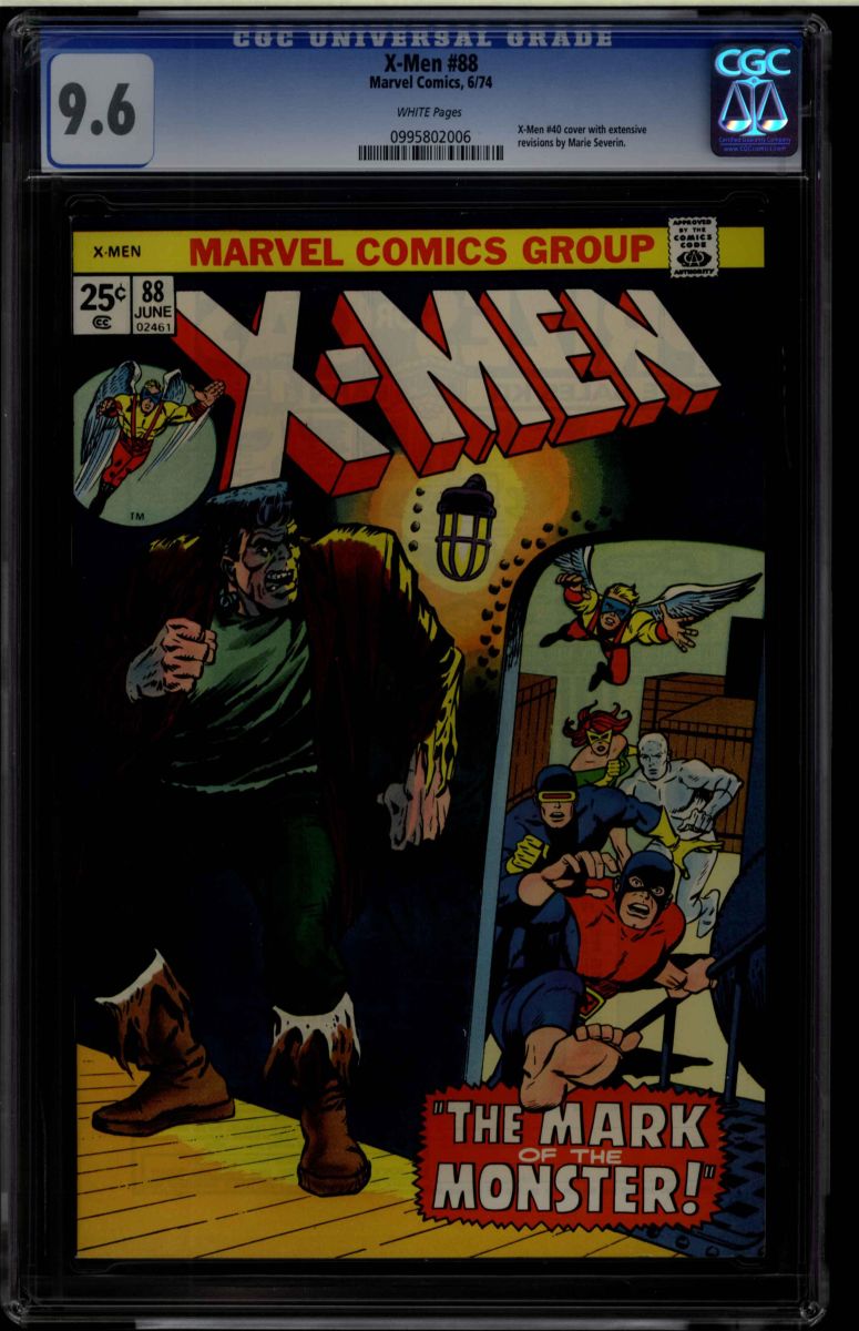 The X-Men #88 CGC 9.6 White. X-Men #40 cover with extensive revisions by Marie Severin. Overstreet 2009 NM 9.2 value = $110. CGC census: 7 at 9.6, none higher!