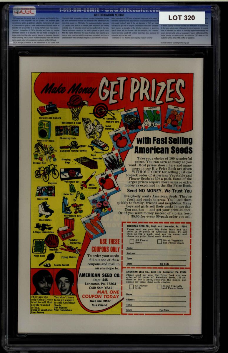 The Auctioneer has reserved the right to reject any and all bids, and to bid at the auction. Auctioneers Auctions are not on approval. Auctioneer does not allow certified material to be returned because of possible differences of opinion with respect to the grade offered by any third party organization, dealer, or service. Absolutely no guarantee of grade is offered for un-certified property sold and subsequently submitted to a third-party grading service. There will be no exceptions to this policy. Under extremely limited circumstances, (e.g. gross cataloging error) a purchaser, who did not bid from the floor, may request Auctioneer to evaluate voiding a sale; such request must be made in writing detailing the alleged gross error, and submission of the lot to the Auctioneer must be pre-approved by the Auctioneer. Bidder must notify Auctioneer in writing of such request within three (3) days of the non-floor bidder receipt of the lot. Any lot that is to be evaluated must be in our offices within 30 days after Auction. Grading does not qualify for this evaluation process nor do such complaints constitute a basis to challenge the authenticity of a lot. AFTER THAT 30-DAY PERIOD, NO LOTS MAY BE RETURNED FOR REASONS OTHER THAN AUTHENTICITY. Lots returned must be housed intact in the original holder. No lots purchased by floor Bidders may be returned (including those Bidders acting as agents for others). Late remittance for purchases may be considered just cause to revoke all return privileges. B: Auctions conducted solely on the Internet have a THREE (3) DAY RETURN POLICY: Lots paid for within seven days of the Auction closing are sold with a three (3) day return privilege. You may return lots under the following conditions: Within three days of receipt of the lot, you must first notify Auctioneer by contacting Client Service by phone (314-680-8599) or e-mail (moundcityauctions@gmail.com), and immediately mail the lot(s) fully insured to the attention of Returns, Mound City Auctions 1081 Teson Rd. Hazelwood, MO. 63042. Lots must be housed intact in their original holder and in their original condition. You are responsible for the insured, safe delivery of any lots. Auctioneer will not be responsible for lots returned in non-registered mail or lots returned without prior authorization per section B. A non-negotiable return fee of 5% of the purchase price ($10 per lot minimum) will be deducted from the refund for each returned lot or billed directly. Postage and handling fees are not refunded. After the three-day period (from receipt), no items may be returned for any reason. Late remittance for purchases revokes all Return-Restock privileges. C: Bidders who have inspected the lots prior to the auction will not be granted any return privileges. D: Comic books sold referencing a third-party grading service are sold “as is” without any express or implied warranty. Certain warranties may be available from the grading services and the Bidder is referred to them for further details: Certified Guaranty Company, LLC. (CGC), P.O. Box 4738, Sarasota, FL 34230. E: Bidders who intend to challenge authenticity or provenance of a lot must notify Auctioneer in writing within thirty (30) days of the Auctions conclusion. In the event Auctioneer cannot deliver the lot or subsequently it is established that the lot lacks title, provenance, authenticity, or other transfer or condition issue is claimed, Auctioneer's liability shall be limited to rescission of sale and refund of purchase price; in no case shall Auctioneer's maximum liability exceed the high bid on that lot, which bid shall be deemed for all purposes the value of the lot. After one year has elapsed, Auctioneer's maximum liability shall be limited to any commissions and fees Auctioneer earned on that lot. F: All comics are guaranteed genuine, but are not guaranteed as to grade, since grading is a matter of opinion, an art and not a science, and therefore the opinion rendered by the Auctioneer or any third party grading service may not agree with the opinion of others (including trained experts), and the same expert may not grade the same item with the same grade at two different times. G: Since we cannot examine encapsulated comics, they are sold “as is”without our grading opinion, and may not be returned for any reason. Auctioneer shall not be liable for any patent or latent defect or controversy pertaining to or arising from any encapsulated collectible. In any such instance, purchaser's remedy, if any, shall be solely against the service certifying the collectible. H: Due to changing grading standards over time, differing interpretations, and to possible mishandling of items by subsequent owners, Auctioneer reserves the right to grade items differently than shown on certificates from any grading service that accompany the items. Auctioneer also reserves the right to grade items differently than the grades shown in the prior catalog should such items be reconsigned to any future auction. I: Although consensus grading is employed by most grading services, it should be noted as aforesaid that grading is not an exact science. In fact, it is entirely possible that if a lot is broken out of a plastic holder and resubmitted to another grading service or even to the same service, the lot could come back with a different grade assigned. J: Certification does not guarantee protection against the normal risks associated with potentially volatile markets. The degree of liquidity for certified collectibles will vary according to general market conditions and the particular lot involved. For some lots there may be no active market at all at certain points in time."