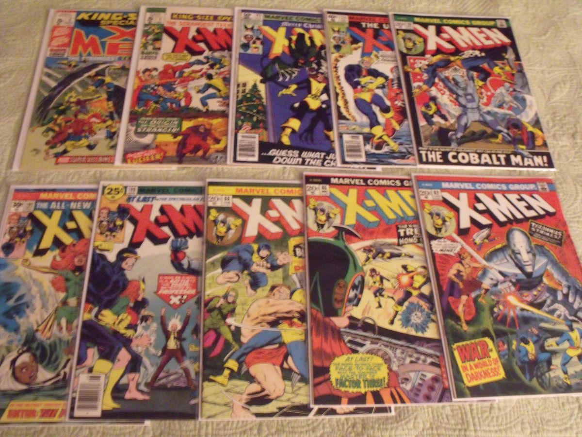 The X-Men #79, 82, 85-86, 100-101, 124, 143, King-Size Special #1, 2. 10 issues total. FN to VF