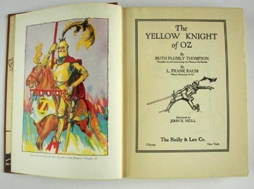 The Yellow Knight Of Oz, by Ruth Plumly Thompson, founded on and continuing the Famous Oz Stories by Frank Baum, illustrated by John R. Neill, published by The Reilly & Lee Co., of Chicago, 1930, only has 9 of 12 color plates, sold AS IS, from the Estate of Charles Bunnell, Condition: Good, cover wear, yellowed page edges, no dust jacket