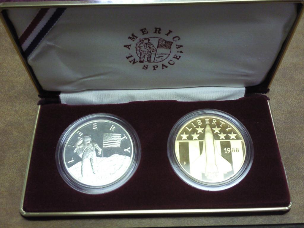 America In Space, 1988 Two Piece Commemorative Set, Contains: A Silver And Bronze Medals, Original Mint Packaging