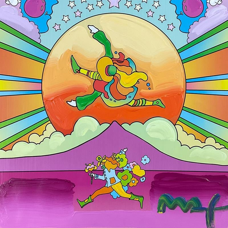 "The Young" is a one-of-a-kind acrylic mixed media on paper, hand signed by Peter Max. On the reverse side of this piece there is a registration number from Peter Max Studios certifying authenticity. This piece comes custom framed. Measures approx. 36" x 30" (frame), 24" x 18" (image).