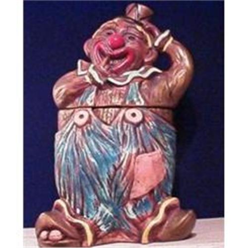 What a cute cookie jar. Everyone loves a clown and this one is especially loveable. He is cold painted as is most of this companies jars, but very colorful and in good condition. Made by California Oringinals.