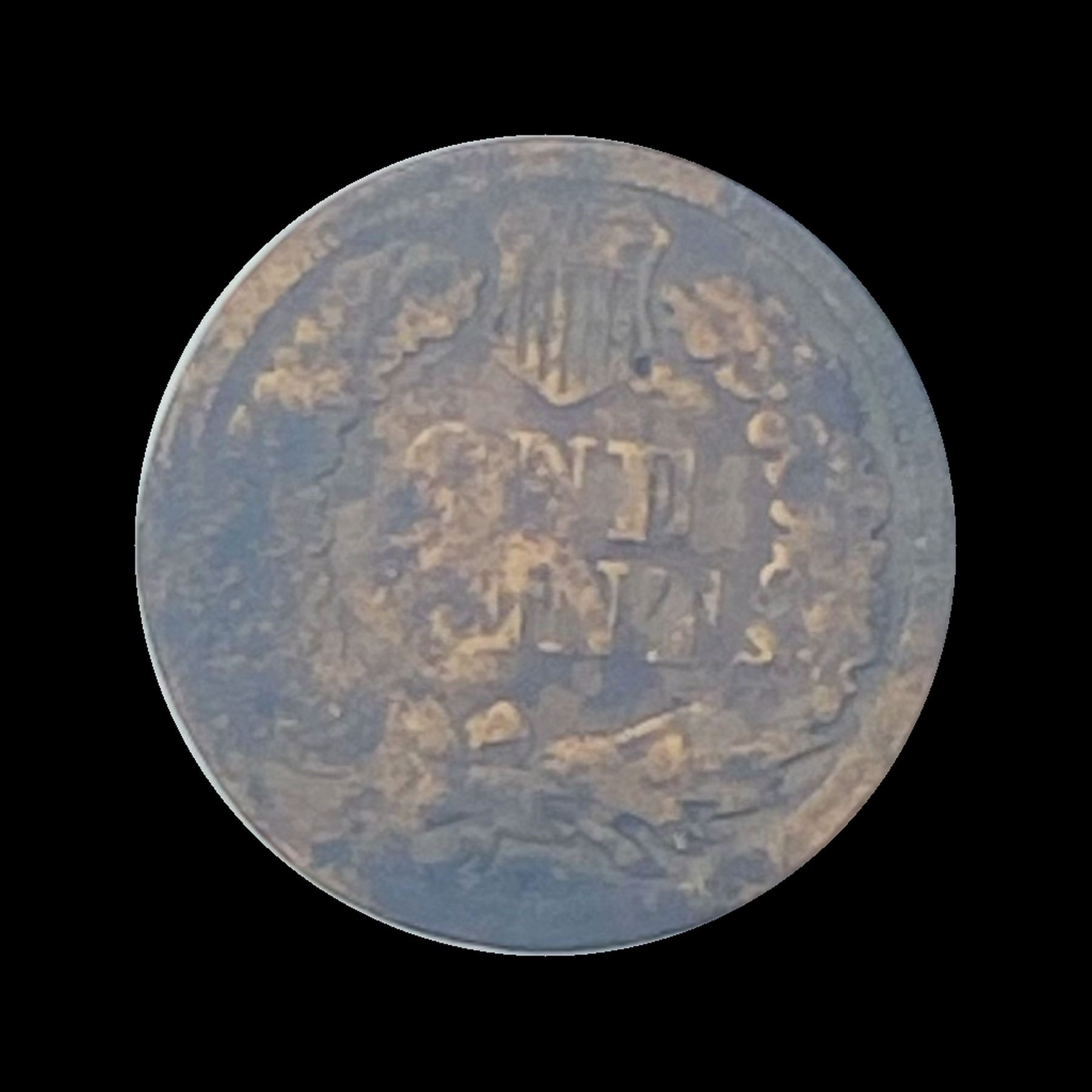 The coin appears to be a heavily corroded U.S. Shield Nickel but the year and mint mark are not visible. NICELY CIRCULATED
