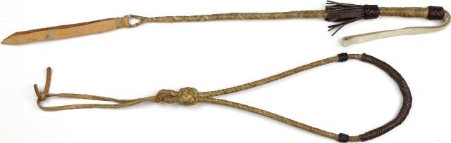 estate of pioneer Cody Wyoming photographer, rancher, guide and journalist Jack Richard (1909-1992). Jack Richard ranched, guided and photographed the Yellowstone area his entire life capturing the ranching, regional and national park lifestyle, and published the Cody Times Newspaper. Richard was friends to famous western artist W.R. Leigh who would stay and paint at the ranch as well as Thomas Molesworth who crafted furniture for the Richard's ranch house. Over 160,000 of Richard's images are now held in the McCraken Library at the Buffalo Bill Historic Center in Cody. 140 Photographs of Jack Richard's work can also be seen in the book "Yellowstone Country" published about him in 2002 by his son Bob. Nicely braided bosal and quirt unmarked purchased from the Dave Shelley saddle shop Cody Wyoming by noted photographer Jack Richard, both remain fine.
