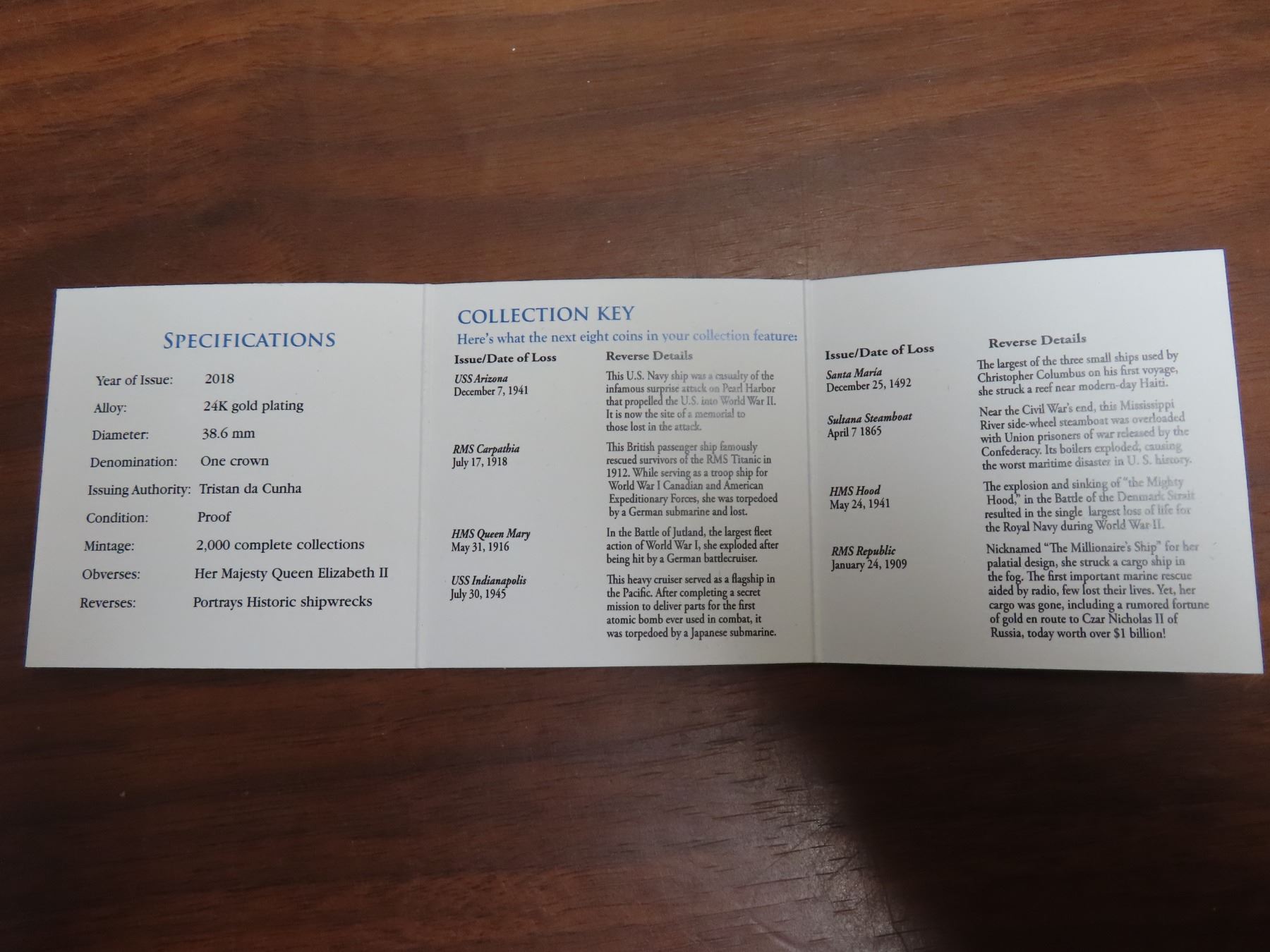 The legendary ship wrecks gold crown collection -24k gold plating - with certificate of authenticity