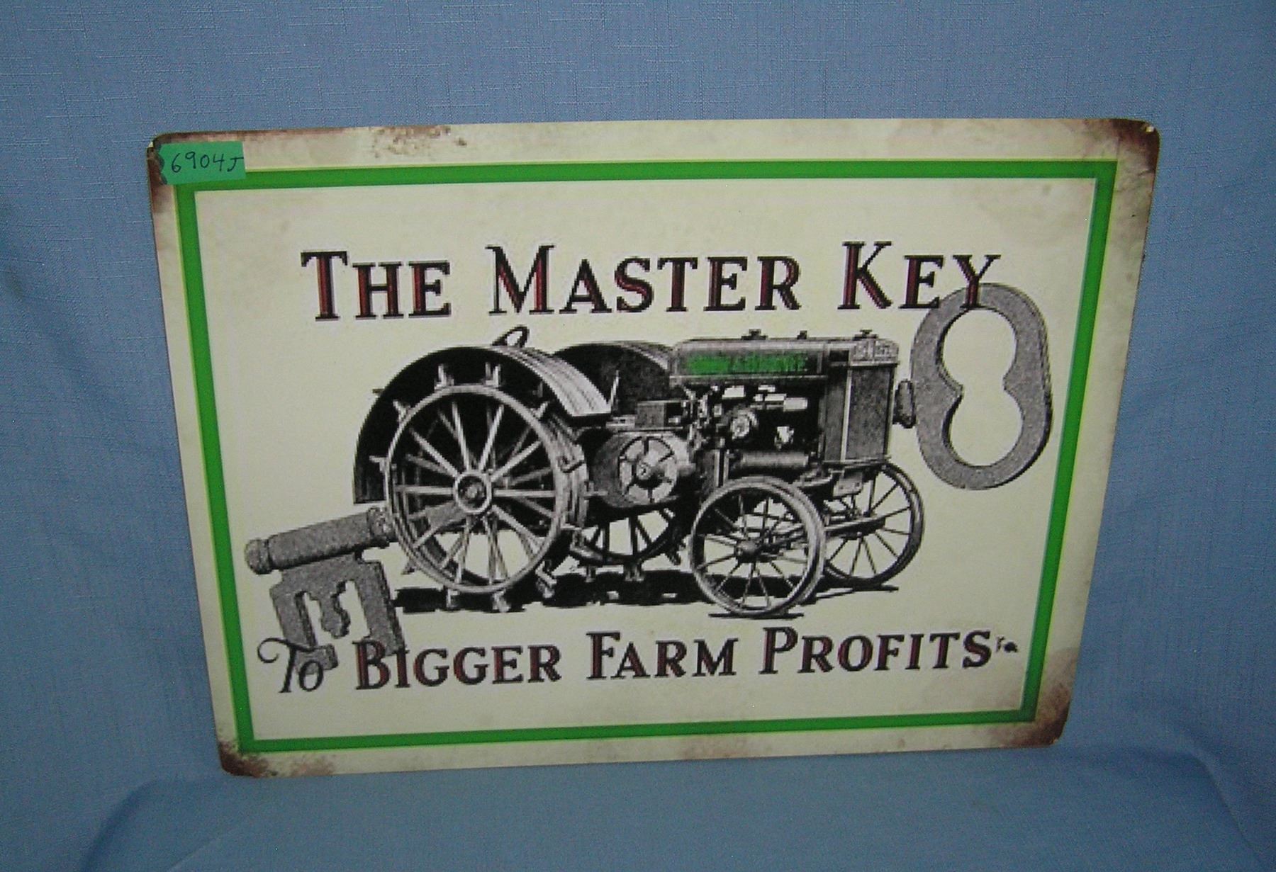 The master key farm tractor advertising sign  retro style advertising sign printed on PVC hardboard these signs are auctioned for their decorative and display purposes 12 inches by 16 inches est. value $50.00-$60.00