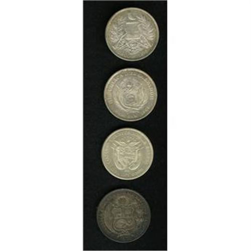 <B>The old world and the new:</B></I> Italy Sardinia 5 Lire 1829-P VF; El Salvador Peso 1904 XF; Guatemala Peso 1895 AU; Panama 50 Centesimos 1904 AU; Peru Sol 1872 XF.<BR><I>From the Monedas Oro Collection</B></I><BR><BR><b>Shipping:</b> Coin/Currency (<a target="_blank" href="http://www.heritageauctions.com/common/shipping.php">view shipping information</a>)