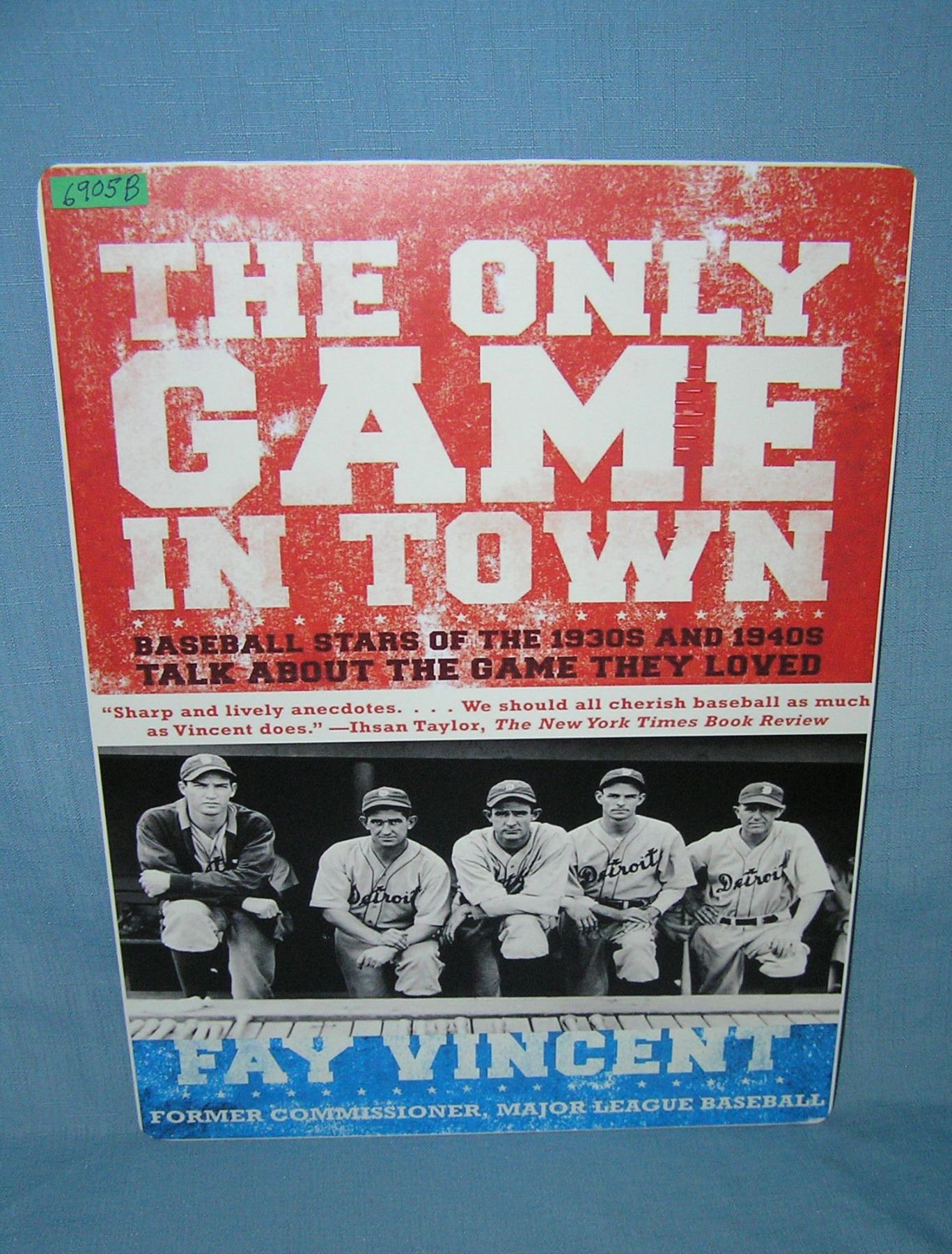 The only game in town baseball  retro style advertising sign printed on PVC hardboard these signs are auctioned for their decorative and display purposes 12 inches by 16 inches est. value $50.00-$60.00