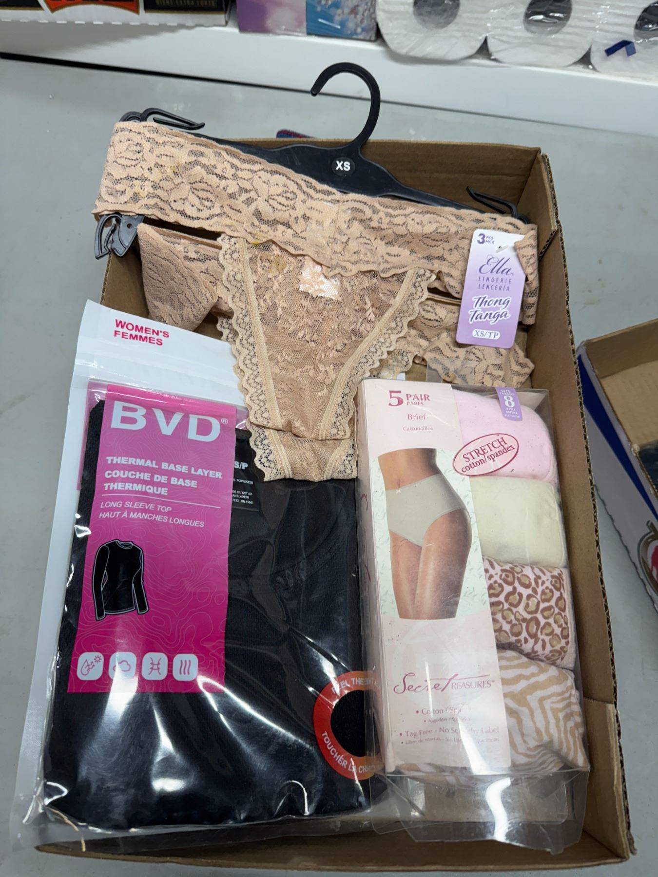 The thermal base layer 2 xs things and size 8 briefs