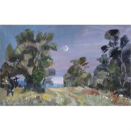 <tr><td>Title:"The young moon" oil in impressionism style.</td></tr>