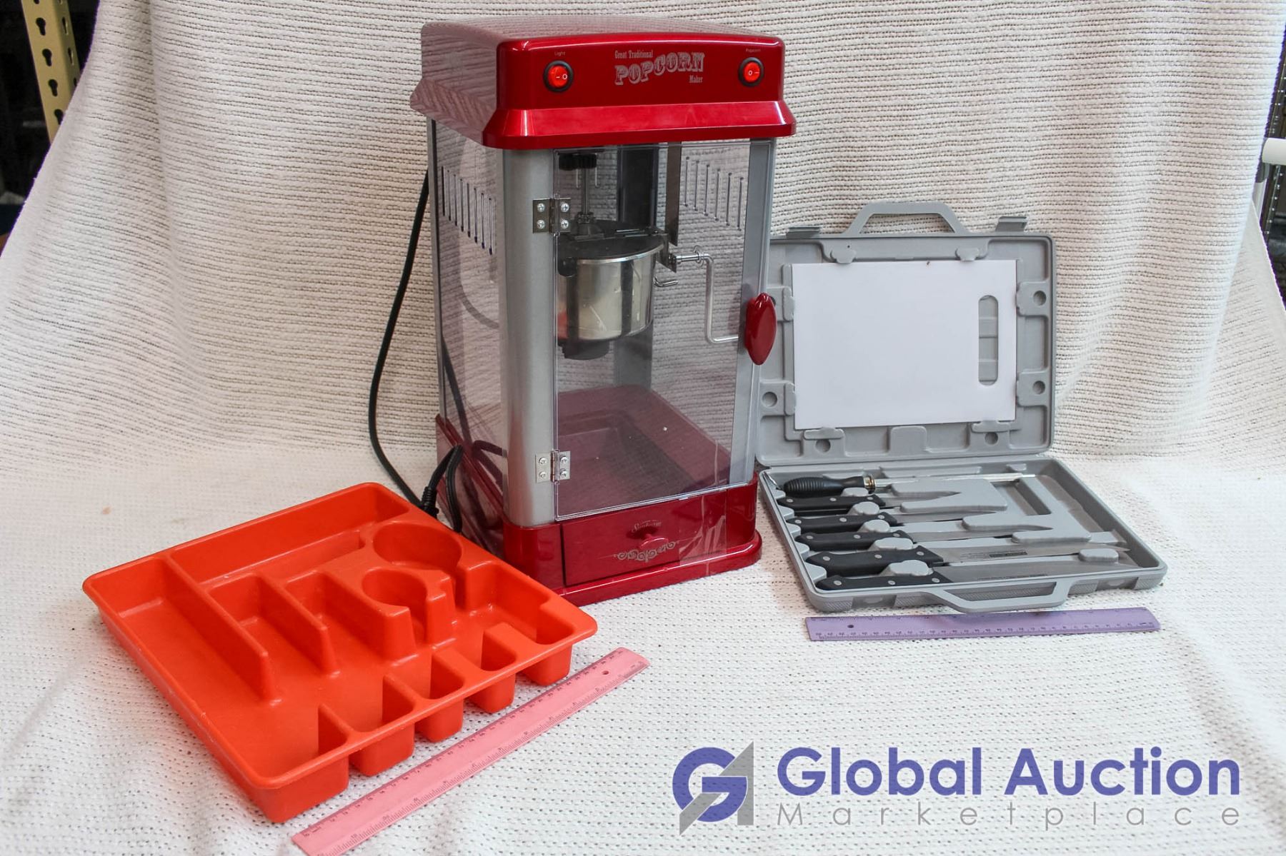 Theater Pop Corn Popping Machine (Working), Knife Set, Cutlery Tray