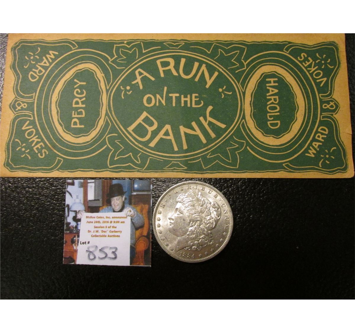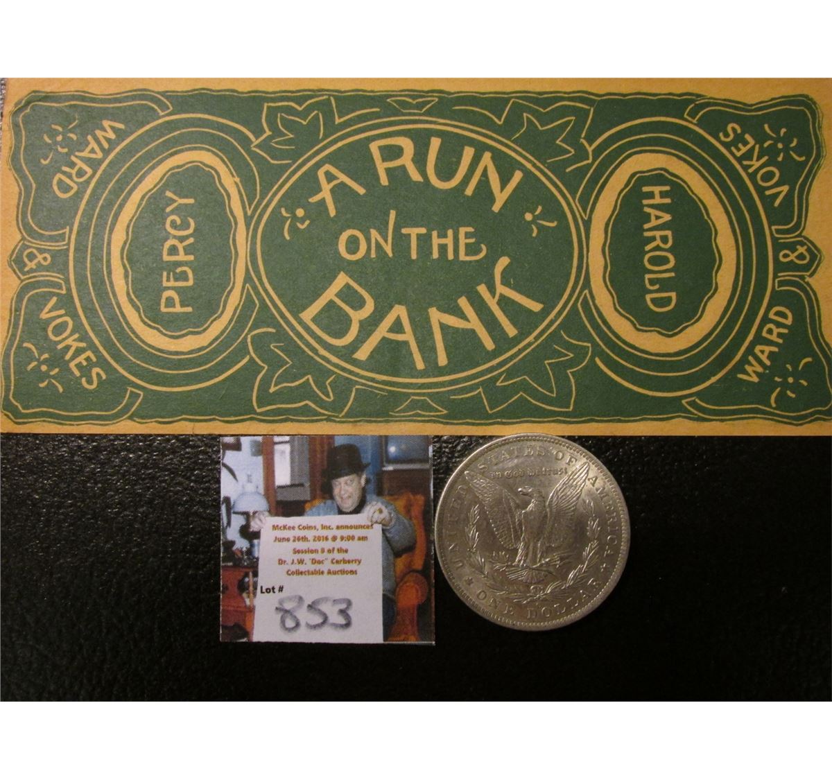 Theatrical Banknote "A Run on the Bank Percy Harold Ward Vokes", originally priced $38, but we have added a nice EF 1884 New Orleans Mint Silver Dollar to assure you of a bargain.