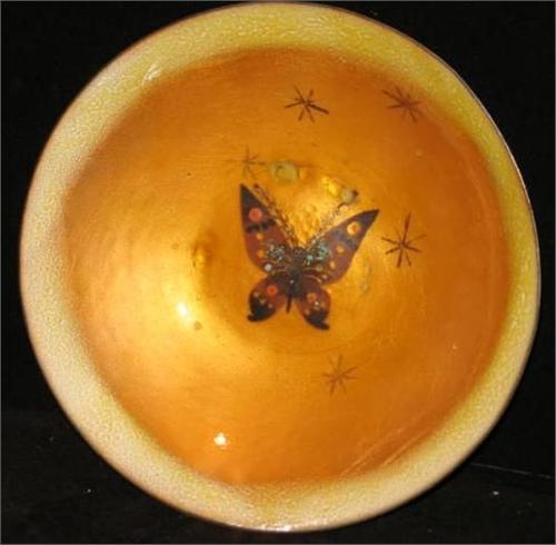Thelma Winter signed Enamel on Copper Butterfly Bowl. 9".