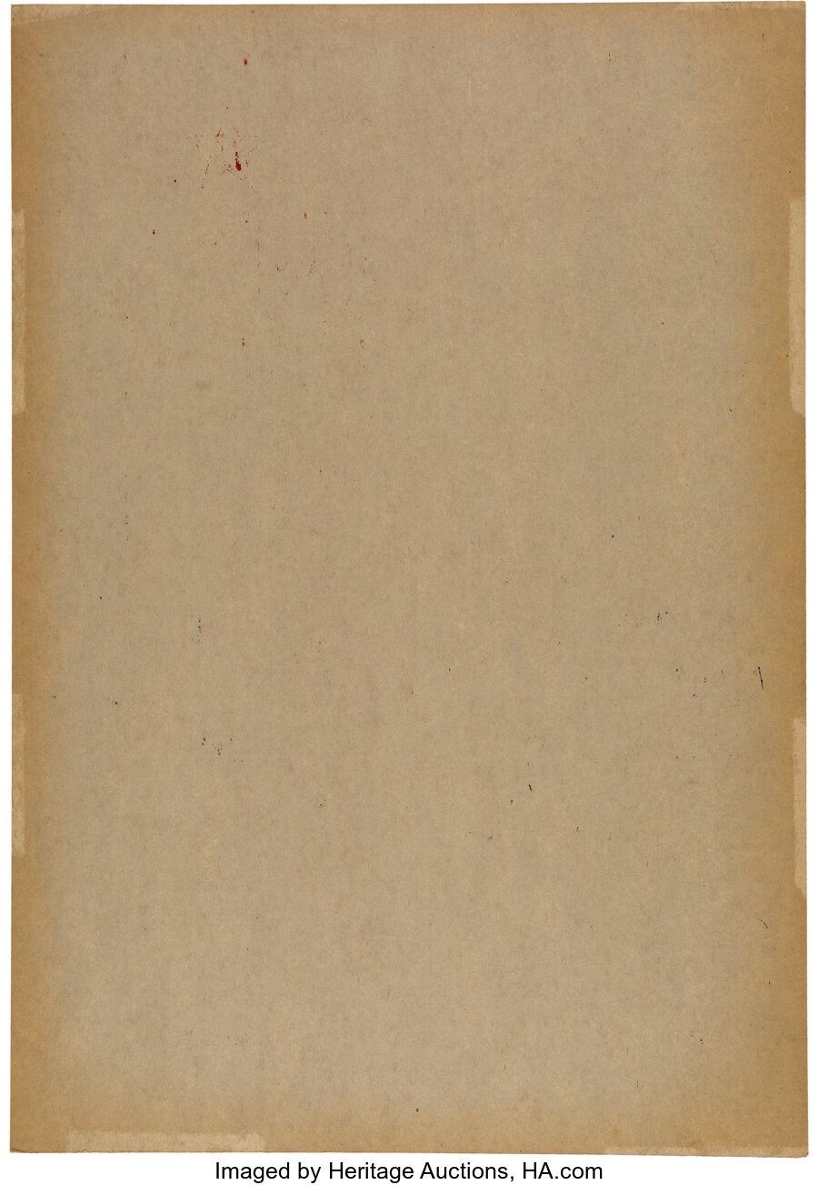 COMICS, COMIC ART, & ANIMATION ART TERM D: Material sold referencing a third-party grading service are sold ?as is? without our grading opinion and without any express or implied warranty. No returns of CGC-certified, CBCS-certified, Beckett-certified, PSA-certified, or Wata-certified material will be accepted for any reason. Auctioneer shall not be liable for any patent or latent defect or controversy pertaining to or arising from any encapsulated material. Certain warranties may be available from the grading services and Purchaser?s sole remedy shall be against the service grading the material. Purchaser is referred to relevant grading service for further details: Certified Guaranty Company, LLC (CGC), P.O. Box 4738, Sarasota, FL 34230; Comic Book Certification Service (CBCS), 4635 McEwen Road, Dallas, TX 75244; Beckett Grading Services, 4635 McEwen Road, Farmers Branch, TX 75244; Professional Sports Authenticator, P.O. Box 6180, Newport Beach, CA 92658; Wata, Inc. , 3101 East 52nd Avenue, Suite C, Denver, CO 80216. Even when the best shipping methods are used, CGC, CBCS, and Wata holders occasionally incur minor chipping and cracking during shipment; therefore, Heritage cannot guarantee the condition of these holders. If they are damaged in transit, Heritage will have them reholdered on the new owner?s behalf, or reimburse reasonable anticipated reholder fees, but will not accept returns due to holder damage that does not affect the grade or condition of the item itself.