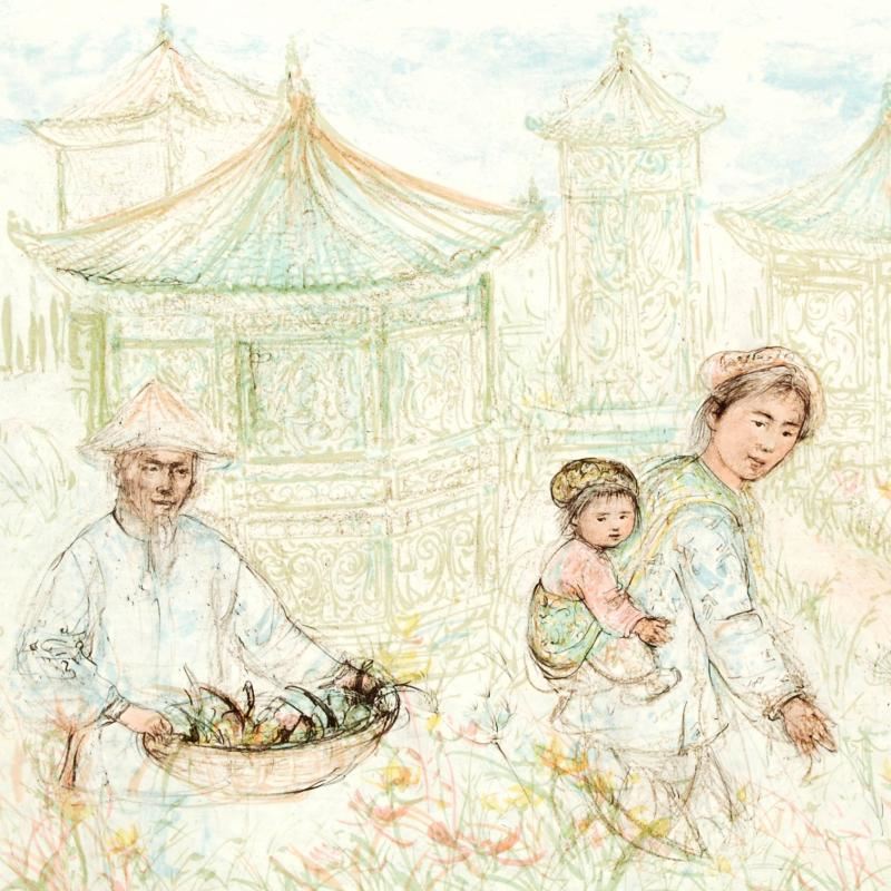 "Then and Now" is a limited edition lithograph on rice paper, numbered and hand signed by Edna Hibel (1917-2014). Includes Certificate of Authenticity! Measures approx. 26.5" x 20" (with border), 20" x 16" (image).