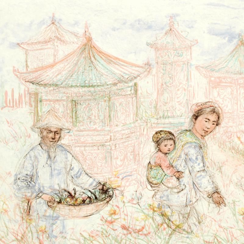 "Then and Now" is a limited edition lithograph on rice paper, numbered and hand signed by Edna Hibel (1917-2014). Includes Certificate of Authenticity! Measures approx. 26.5" x 20" (with border), 20" x 16" (image).