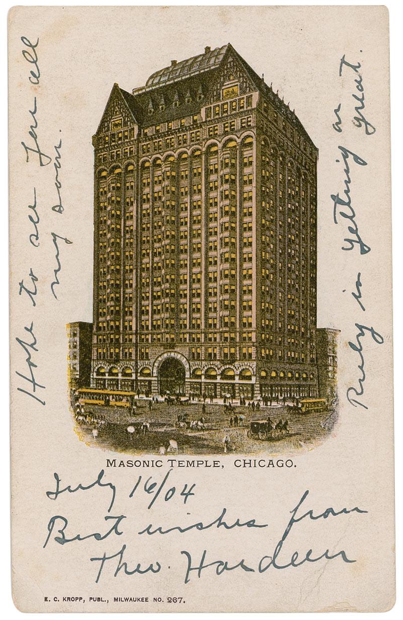 Stage name of the magician born as Ferencz Dezso Weisz (1876–1945), brother of Harry Houdini. Fountain pen signature and sentiment, “Hope to see you all very soon. Ruby is getting on great. July 16/04. Best wishes from Theo. Hardeen,” on an off-white 3.5 x 5.5 postcard. Hardeen has also addressed the front to Miss Mable Pearson in London. In very good condition, with mild soiling, toning, and scattered creasing.
