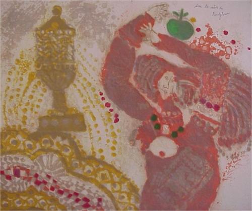 Theo Tobiasse (b. 1927) French, SUR ES RIVS DE BABYLONE, color carborumdum gravure, signed in p...