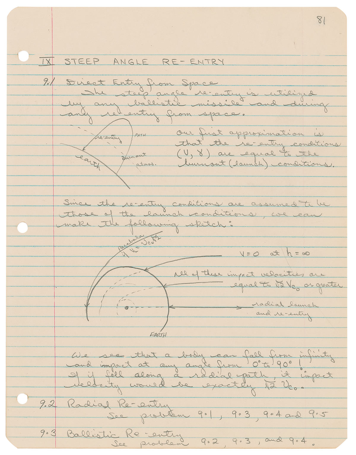 Air Force pilot (born 1930) selected as part of the third group of astronauts. Freeman was killed on October 31, 1964, when a goose smashed through the cockpit canopy of his T-38 Talon jet trainer. Flying shards of Plexiglas entered the jet engine intake and caused the engine to flameout. Freeman ejected from the stricken aircraft, but was too close to the ground for his parachute to open properly. Very rare training notebook used by Freeman for various academic training topics, literally hundreds of 8.5 x 11 typed pages, handwritten notes and navigational computations, tests, and annotations. He has printed his name in pencil at the top of a printed outline page and one of the lightly-lined sheets of paper, “T. C. Freeman.” as well as his last name only on another lined page. On another page he has drawn a capsule as an illustration for stability deviations. The total collection of pages stand 2.25-inches tall and are secured within a three-ring binder. Chapters in the binder include Flight Mechanics featuring free flight trajectories, space orbits, inertial guidance and reentry mechanics, and heating and guidance control; and aerodynamics featuring orbital mechanics, reentry mechanics, burning flight, thrust programming, and radiative and convective heating. In overall fine condition. In addition to completing basic training and familiarization with Gemini training and briefings, Freeman and the other new astronauts took on additional assignments relating to the Apollo missions, as many of them were expected to progress to that program than had their predecessors. One of the only training books ever offered on the market!