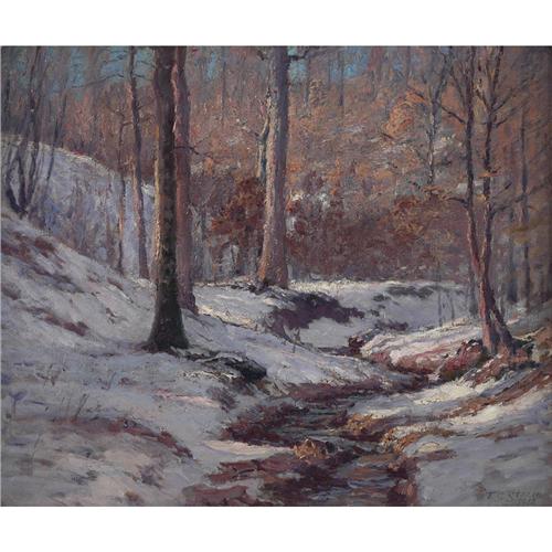 Theodore Clement Steele, Snow Land scape, Oil/Can