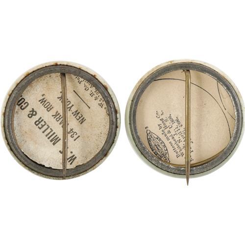 <B>Theodore Roosevelt & Alton B. Parker: A Matched Pair Of 1¼" 1904 Jugates in the Classic Standing Liberty Design.</B></I> Each has the slightest hint of light rim foxing, but these examples present very nicely. This popular and beautiful design first appeared in the 1904 campaign, and proved so popular that it was also used for the candidates in 1908 and 1912, and in varying sizes.<BR><BR><b>Shipping:</b> Miscellaneous Collectibles, Smal (<a target="_blank" href="http://www.heritageauctions.com/common/shipping.php">view shipping information</a>)