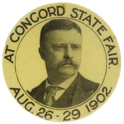 <B>Theodore Roosevelt Campaign Button</B></I> on a yellow background with a picture center, around "At Concord State Fair Aug. 26 - 29 1902.", 1", St Louis Button Company, light surface wear and a small dot on the curl else very fine. <BR><BR><b>Shipping:</b> Miscellaneous Collectibles, Smal (<a target="_blank" href="http://www.heritageauctions.com/common/shipping.php">view shipping information</a>)
