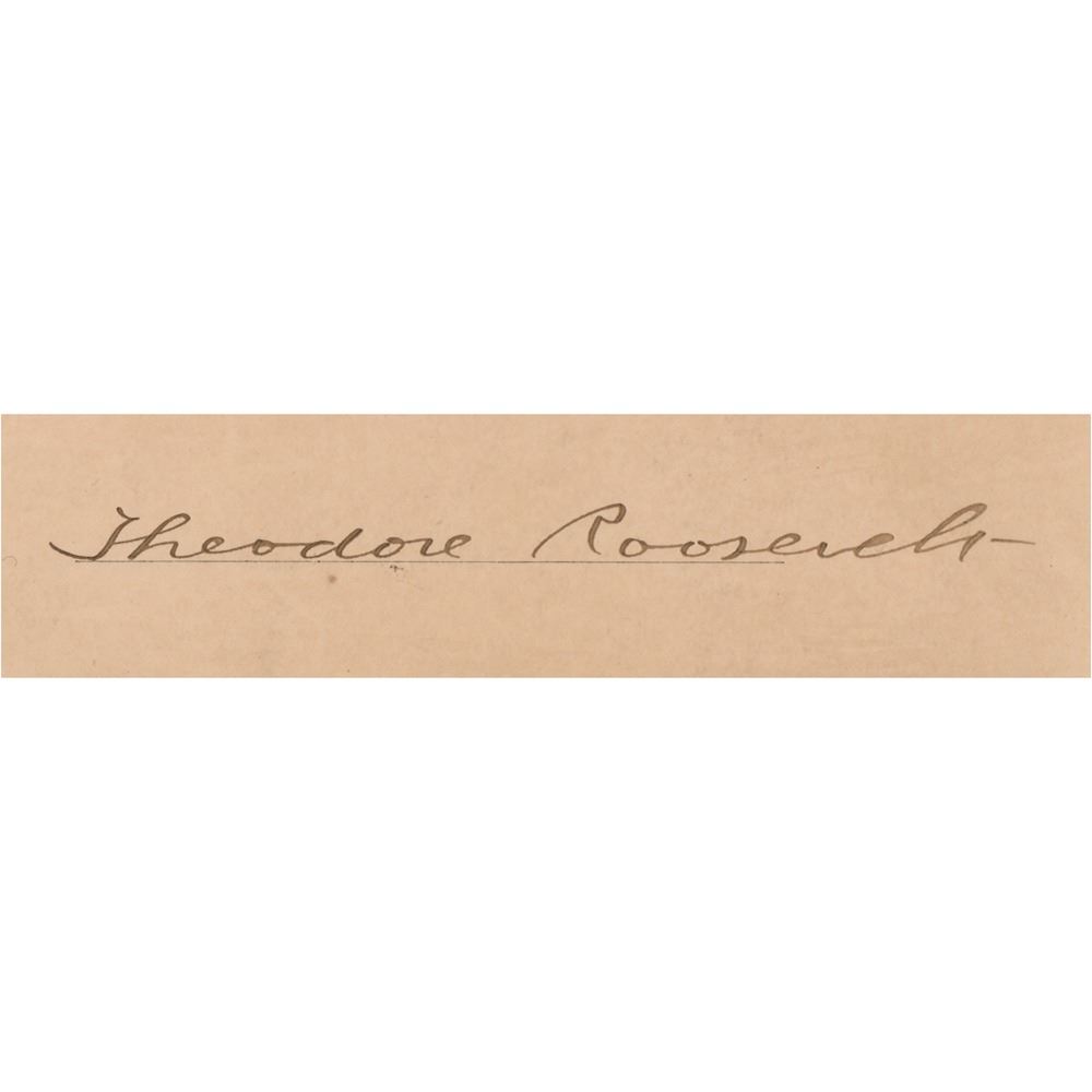 Partly-printed DS as president, one page, 17.75 x 13.25, February 8, 1905. President Roosevelt appoints Alfred B. Dent as "Notary Public for the District of Columbia." Beautifully signed at the conclusion by President Theodore Roosevelt and countersigned by Attorney General William Henry Moody. The pristine red Department of Justice seal affixed to the lower left remains intact. Affixed by its top edge to a slightly larger sheet and in fine condition.