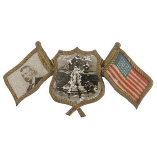 <B>Theodore Roosevelt and St. Louis World's Fair Pin.</B></I> The center shield has a 1904 St. Louis World's Fair building. Crazing to the photos and some image loss to the center photo. <BR><BR><b>Shipping:</b> Miscellaneous Collectibles, Smal (<a target="_blank" href="http://www.heritageauctions.com/common/shipping.php">view shipping information</a>)