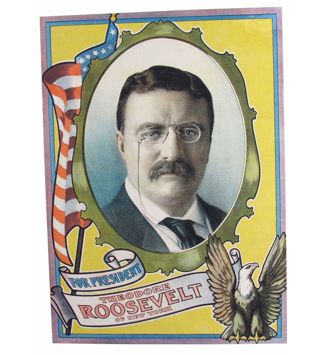 Theodore Roosevelt for President Poster. Excellent color and graphics. Professionally restored. 12 3/4 X 17 3/4 inches.