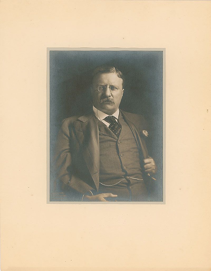 Original matte-finish 5.75 x 7.75 Harris and Ewing portrait of Roosevelt, as president, in a three-piece suit affixed to its original 10.5 x 14 mount. In very good condition, with moderate silvering to edges and darker portions of image.